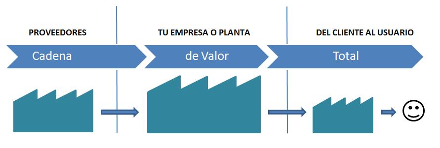 Si tomamos el punto de vista del VSM (Value Stream Mapping), deberíamos estar trabajando siempre desde una perspectiva general de la cadena de valor y no desde los procesos individuales en si mismos, por lo que es importante utilizar el flujo completo de la cadena, con el objetivo de realizar alguna mejora y no solo algunas de las partes individuales de esta.